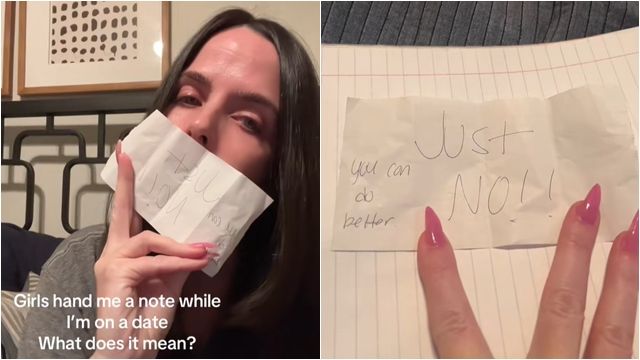 來自美國德州的琳賽(Lindsay)正在與一名男子約會,卻突然有2名陌生女子靠過來,偷偷塞給她一張紙條。琳賽把這段經歷分享至TikTok,網友們卻一面倒勸她「快逃啊」。