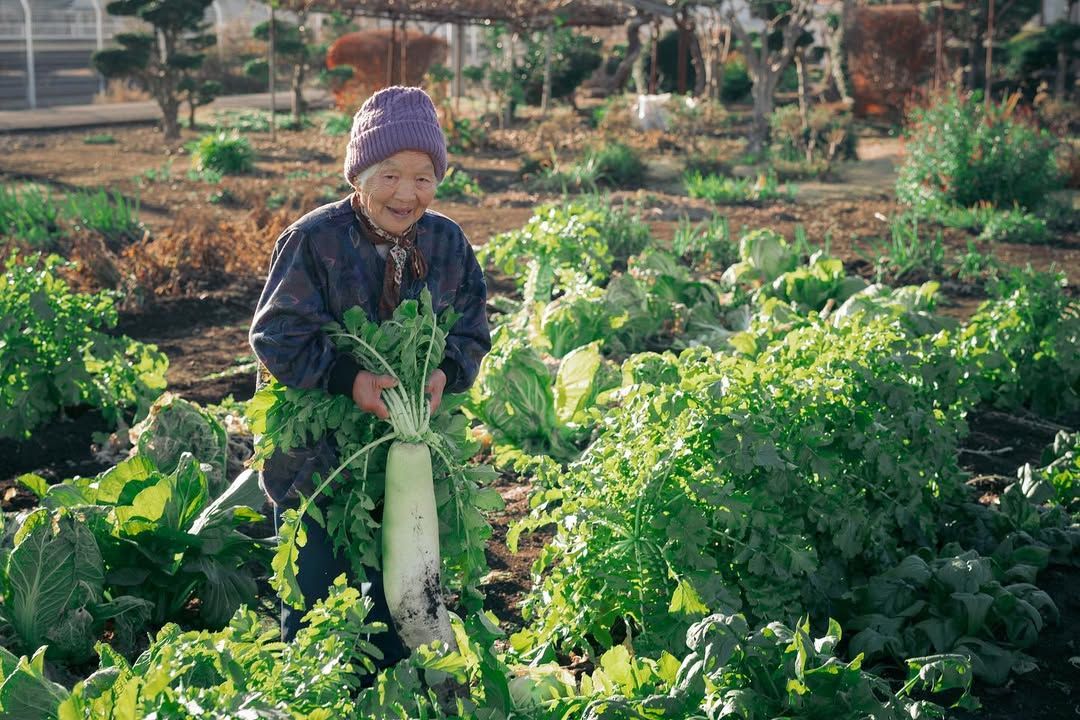 因為很喜歡務農,千代阿嬤晴天時最多可以在田裡待上5到6小時,努力從事拔草等活動。她在500坪大小的田裡種了白菜、洋葱等約40種作物,現在還能輕鬆拔起重1公斤以上的白蘿蔔,「因為每天都活動身體,所以讓我常保健康」。